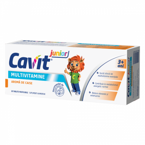 O tabletă masticabilă conţine: Vitamina A acetat 0,6 mg, Vitamina B1 0,44 mg, Vitamina B2 0,6 mg, Vitamina PP (vitamina B3) 3 mg, Vitamina B5 (acid pantotenic) 4,6 mg, Vitamina B6 0,49 mg, Acid folic (vitamina B9) 0,1 mg, D-biotină (vitamina H sau vitamina B7) 0,01 mg, Vitamina B12 0,001 mg, Vitamina C 60 mg, Vitamina D3 0,005 mg, Vitamina E 4,55 mg, beta-caroten 30% 0,4 mg, gluconat de calciu 181,9 mg (echivalent a 17 mg calciu ionic)
