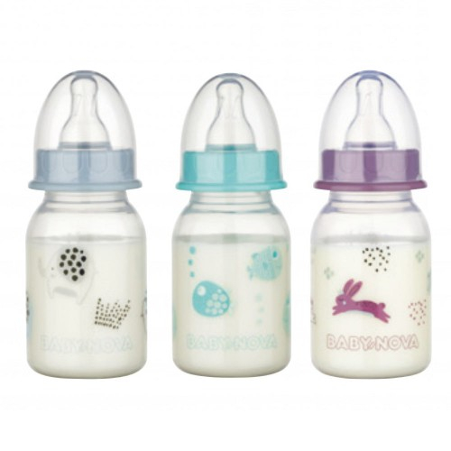 Produs format din: Capac antiscurgere (igienic si sigur); Tetina din silicon (anticolici si cu forma naturala); Inel filetat (usor de deschis si inchis); Capac de protectie (pentru transportare usoara); Recipient rezistent (potrivit pentru toate formele de alimente lichide pentru sugari, fabricat din polipropilena de inalta calitate, usor de curatat si potrivit pentru fierbere)