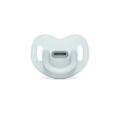 Realizat din silicon sigur, fără elemente din plastic și cu un scut delicat pentru gură. Forma sa simetrică asigură plasarea corectă în gura bebelușului.