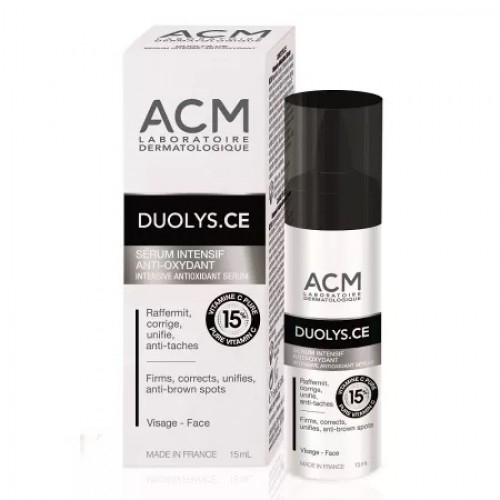 ACM Duolys CE ser intensiv antioxidant, 15 ml (pentru față, gât și decolteu) contine activi cosmetici precum vitamina C cosmetica.